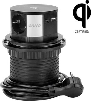 ORNO Pop-up Stekkerdoos met Qi Draadloze Oplader - 3 Stopcontacten - USB-A+C - Quickcharge 3.0 - Zwart - Stekkerdozen en piekspanningsbeveiliging