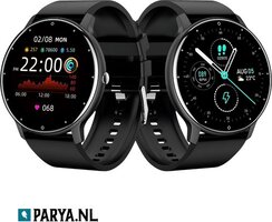 Parya Official Dark Black Smartwatch - Heren & Dames - HD Full Touchscreen - Activity Tracker - IOS & Android