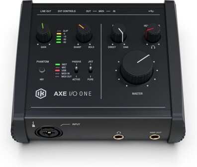 IK Multimedia's Axe I/O One audio interface is een veelzijdig en gebruiksvriendelijk recording device dat is ontworpen voor gitaristen, bassisten en andere musici die een hoogwaardige opname-oplossing zoeken. Hij biedt een scala aan functies die het een uitstekende keuze maken voor zowel beginners als professionals. Een van de opvallendste kenmerken van de Axe I/O One is de geavanceerde instrumentinvoer. Zo beschikt de I/O One over IK's gepatenteerde Z-TONE impedantie-aanpassingscircuit, waarmee gitaristen eenvoudig kunnen schakelen tussen een ongerept, transparant geluid en een warmere, meer analoge klank met slechts een eenvoudige draai aan de knop. Tevens bevat de input een ingebouwde tuner en een instelbare niveauversterking, waardoor het gemakkelijk is om zonder extra apparatuur een geweldige sound te krijgen.
