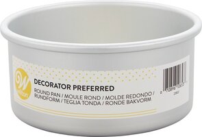Diepe Wilton Decorator Preferred® Round pan (Ø 15x7,5cm), topmerk onder de Wilton taartpannen! 15 cm diameter bij 7,5cm diepte. Ronde taartpan met extra dik aluminium dat zorgt voor goede warmte geleiding.