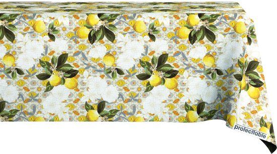 Breng een zonnige en frisse uitstraling in huis met het tafelzeil Citroenen Geel van Protecttable. Dit levendige tafelzeil is versierd met een speels citroenenmotief in stralend geel, waardoor het een vrolijke en energieke sfeer toevoegt aan je tafel. Perfect voor zowel dagelijks gebruik als voor speciale gelegenheden, dit tafelzeil maakt elke maaltijd een feest.