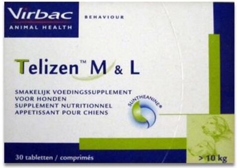 Telizen is een rustgevend voedingssupplement voor honden en katten. Het vermindert gedrag geassocieerd met angst, helpt het dier kalmeren en bevordert de ontspanning zonder bijwerkingen, zoals slaperigheid of andere ongemakken. Het bevat de werkzame stof L-Theanine.