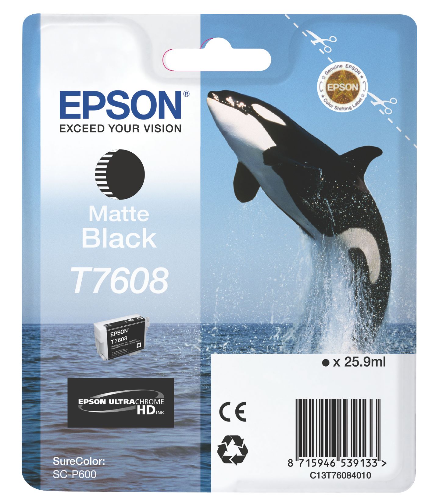 Epson T7608 - Zwarte inktcartridge - 25 ml - C13T76084010 - Tekeninkt