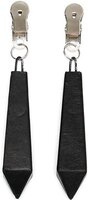 Tepelklemmen met aan elke klem een gewichtjen. Het gewichtje is bekleed met zwart leer.