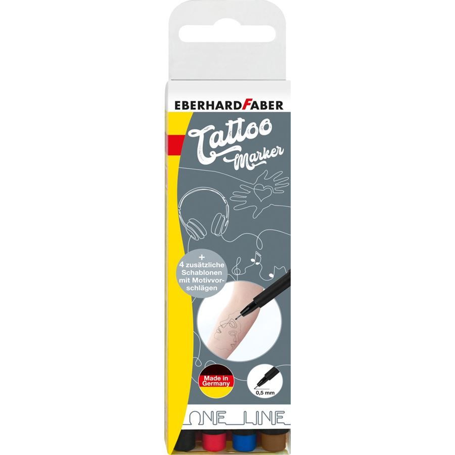 Eberhard Faber One Line Tattoo Stiften - 4 stuks - Zwart - Kinderen - Tijdelijke tatoeages