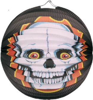 Ronde lampion 25 cm doodskop. Papieren trick or treat lampion om langs de deuren mee te gaan met Halloween, of gewoon ter decoratie in huis of tuin. Halloween thema versiering/lampionnen.