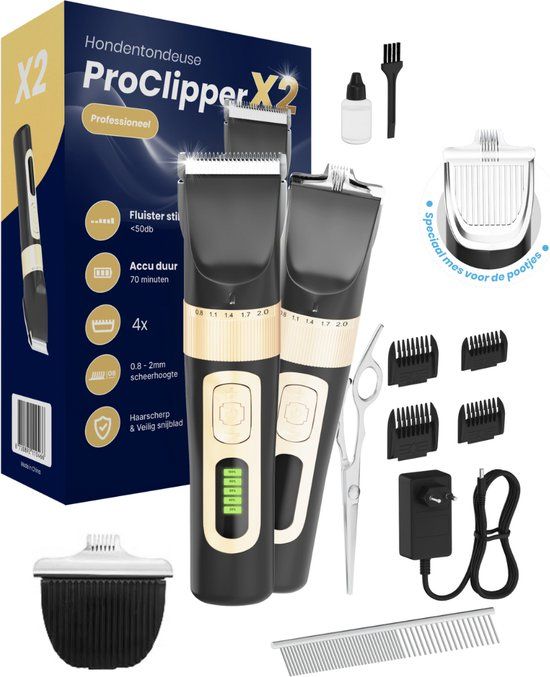 Met de Brightbrand Proclipper X2 krijg je niet alleen een geweldige elektrische tondeuse, maar ook een handige precisie trimmer voor de moeilijk bereikbare plekjes zoals de pootjes en het gezicht. Geef je viervoeter een professionele look met deze veelzijdige hondentondeuse.