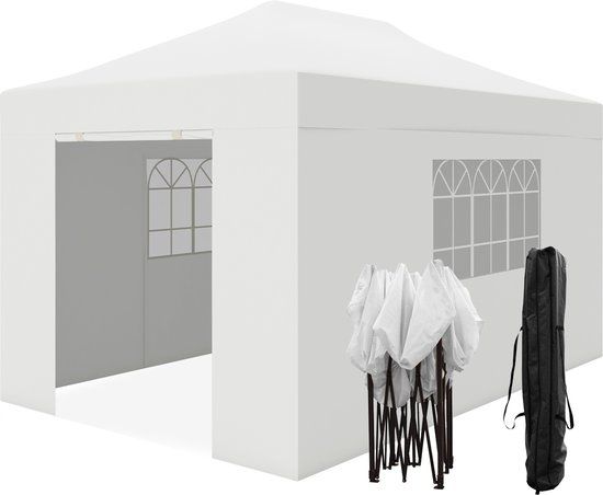 LifeGoods Partytent - 3x4.5m - Wit - Opvouwbaar - Waterdicht - Met Zijwanden - Tuinhuisjes