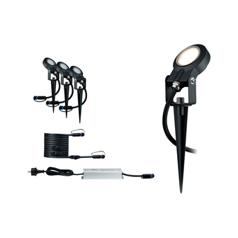 Uitpakken, in elkaar steken, tuin verlichten: de Plug & Shine Sting Starterset bestaande uit drie warmwitte grondpennen, trafo en verbindingskabel biedt u een ideale instap in de buitenverlichting. De pennen zijn ideaal voor het verlichten van planten en voorwerpen. Ze kunnen afzonderlijk worden gericht en zijn absoluut weerbestendig. Indien nodig kunt u het systeem met andere Plug & Shine componenten uitbreiden.