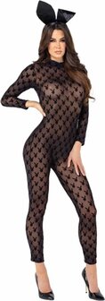 De Playboy Bunny 2-Delige Set - Zwart is de ultieme combinatie van sensualiteit en speelsheid. Deze set bevat een transparante catsuit met het iconische Playboy-logo, ontworpen om je silhouet prachtig te accentueren. De look wordt compleet gemaakt met de bijpassende iconische Playboy-oortjes. Perfect voor wie wil opvallen tijdens een speciale gelegenheid of themafeest. Een onweerstaanbare set die luxe en allure uitstraalt!