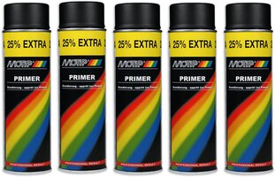 Motip verf primer 5 stuks Spuitbus Primer zwart sneldrogend 500 ML voor metaal , hout, aluminium en steen - 25 % EXTRA