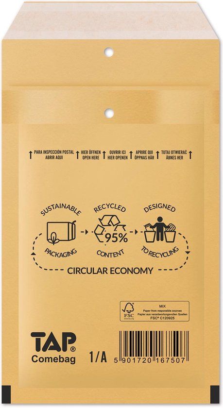 Bekijk productComebag luchtkussenenveloppen - 100 x 165 mm - Bruin - Doos 200 stuks - Verpakkingsmaterialen