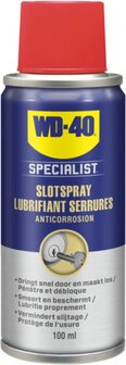 WD-40 Specialist Slotspray is speciaal ontwikkeld voor het onderhouden van slotcilinders (huis, auto, meubels, sloten). De siliconen- en vetvrije formule en de hoge capillaire werking zorgen ervoor dat het product in het cilindermechanisme kan doordringen en blokkades kan loslaten zonder harsachtig te worden. Het laat een dunne smeerfilm achter die ook beschermt tegen corrosie. Voordelen van het product: Doordringt & lost op Smeert & beschermt Voorkomt slijtage Aanbevolen voor: Sloten Slotcilinders