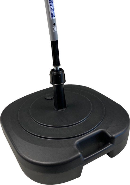 Stabiele basis voor je beachflag. Te vullen met water of grind. Voet wordt geleverd met een stalen pen (rotator) die zorgt dat de vlag kan draaien.