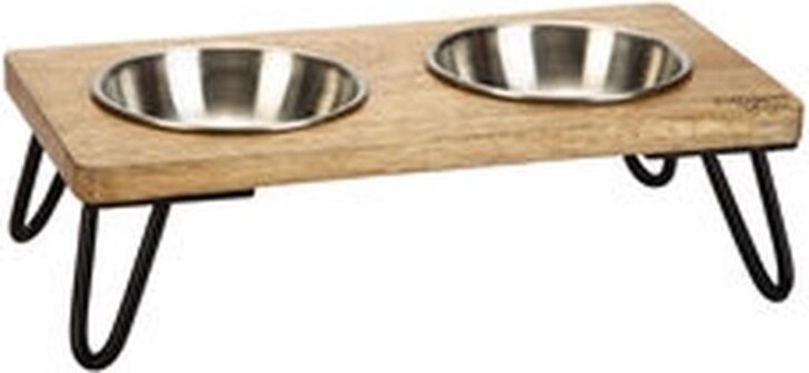 Bekijk productDesigned by Lotte Linga - Dinerset Kat - Hout/Metaal - Incl. 2 Bakjes - 31x16x10cm - Voederbakken
