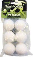 Zakje met zes ballen voor tafelvoetbal. Deze Buffalo tafelvoetbal balletjes hebben een diameter van 36 mm en zijn gemaakt van duurzaam wit plastic met een ingegraveerd profiel.