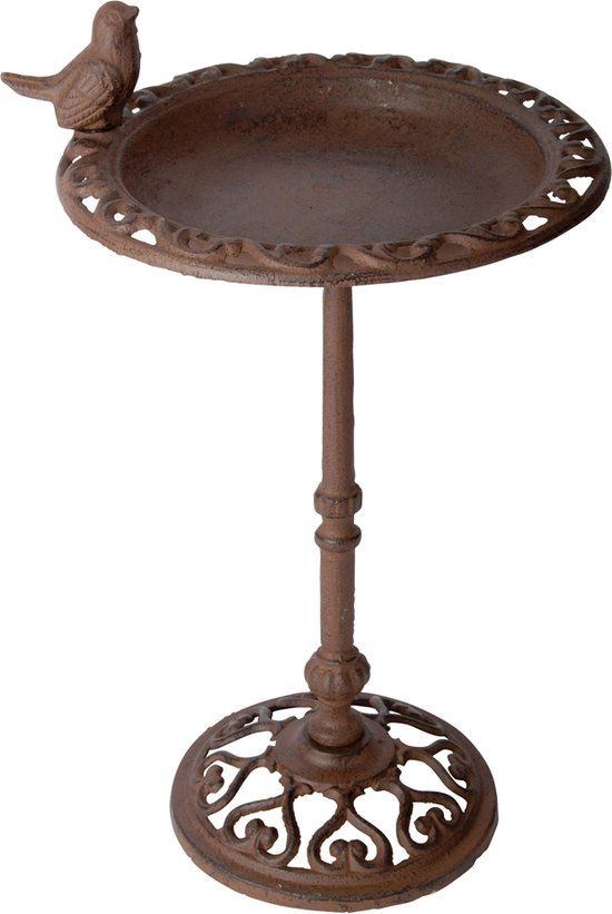 Het vogelbad in antieke look heeft een decoratieve vogelfiguur en een sierlijke openwerkrand en staat. Plaats dit opvallende vogelbad dichtbij uw raam of terras, zodat u kunt genieten van het kijken naar de zwemmende vogels.