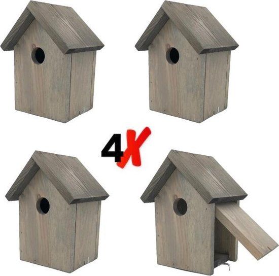 GARDEN SPIRIT Voordeel set Nestkast 4x Vogelhuisje "Huisje" - Hout - Zwart/Grijs - Vogelhuizen