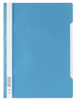 Standaardmap van Polypropyleen. Met transparant voorblad en etiketvenster over de gehele lengte van de rug.