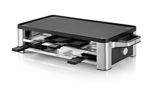 Na voor de zoveelste keer een goedkoper raclette/gourmetstel te hebben afgevoerd vanwege een defecte thermostaatknop of afbladderende grillplaat, dit maal gekozen voor de duurdere raclette van WMF. Beste beslissing ooit, al was het maar om de extra bewaarplaats voor niet gebruikte pannetjes!. Plaat is van duurzaam materiaal en ook na diverse keren gebruik goed en snel schoon te maken. Absolute aanrader!