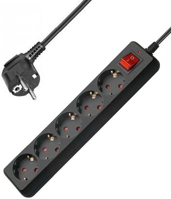 Allteq Stekkerdoos met schakelaar - 5-voudig - Zwart - 1.5 meter - Wandcontacten