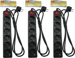 Ben Tools 3x Stekkerdozen 6-voudig zwart - 1,5 meter - Met randaarde en schakelaar - Wandcontacten