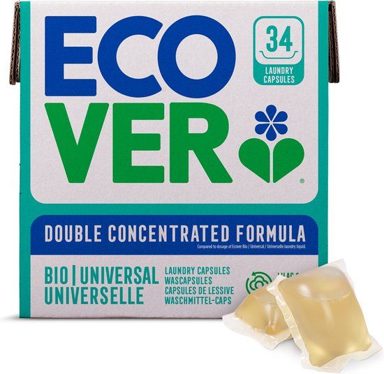Ecover Wascapsule Universeel Bio zijn gemaakt van plantaardige en biologisch afbreekbare ingrediënten, waardoor ze niet alleen beter zijn voor het milieu, maar ook voor uw huid. De capsules reinigen, beschermen en vernieuwen zonder toegevoegde kleurstoffen en optische bleekmiddelen. De capsules zijn geschikt voor zowel wit als gekleurd wasgoed en verwijderen vlekken al vanaf 20°C.Ecover Wascapsule Universeel Bio:Vrij van kleurstoffen en optisch bleekmiddelMet de geur van upcycled roseVerwijdert vlekken vanaf 20°C34 wasbeurtenHoe te gebruiken?Gebruik 1 capsule voor licht vervuilde kleding en zacht/middelhard water. Gebruik 2 capsules voor sterk vervuilde kleding of een grote wasmachine, Verwijdert vlekken vanaf 20°C (tot 60°C),