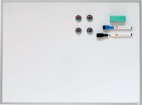 Rexel magnetisch whiteboard met aluminium lijst & accessoires - 585 x 430 mm, inclusief twee 2-in-1 markers, vier bubbelmagneten en mini magnetische wisser.