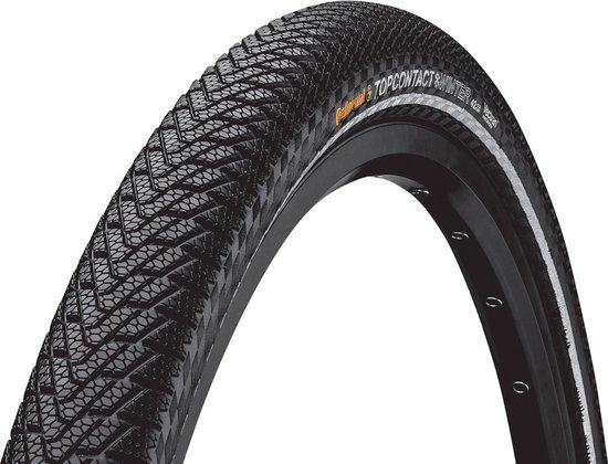 CONTINENTAL buitenband "Top Contact Winter II Premium" VectranBreaker, voor E-bikes tot 50 km/h, zwart / reflex Geoptimeerd gewicht, minder rolweerstand, geoptimeerd rijgedrag bij temperaturen tussen -25° en +7°C, beproefd lamellen-profiel. De reflex-streep zorgt voor extra veiligheid in de donkere jaargetijden. Safety Level 6. Handmade in Germany! i.› 50-584 (27,5" x 2,00), vouwbaar, 760 g