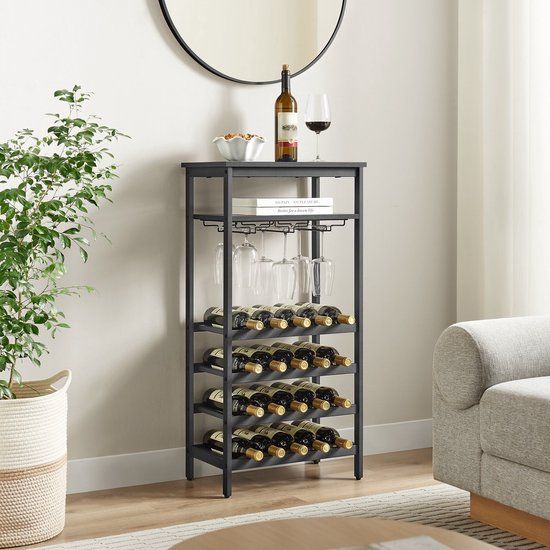 In deze privéwijnkelder heeft u 20 open vakken om uw unieke wijnsmaak te laten zien en om uw wijnen gemakkelijk te sorteren op type en vintage. Wanneer een vriend onverwacht langs komt voor een drankje, is deze plank altijd klaar - met 4 houders voor glazen en rustieke schotels voor snacks.