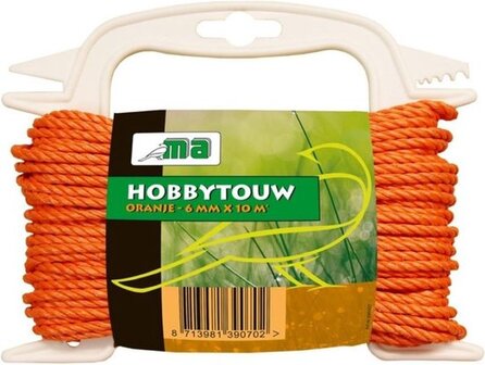 Een extra sterk touw/draad, in de kleur oranje. Het touw is gemaakt van 2 gedraaide strengen kunststof, is weer bestendig en blijft drijven op water zodat u deze bijvoorbeeld voor uw boot kunt gebruiken. Afmeting: D6 mm x L10 meter. Hobby/klus touw extra sterk oranje voor binnen en buiten.