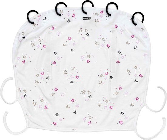 Dooky Cover zonnescherm Twinkle Stars Deze Dooky Cover geeft bescherming en een rustige omgeving voor je kindje. De Dooky cover biedt optimale zonbescherming tegen UVA en UVB stralen. Daarnaast is de cover beschermend tegen licht, regen, wind en sneeuw. Als je de Dooky cover gebruikt kan je kindje lekker rusten en wordt je kindje niet beinvloed door een onrustige omgeving. De Dooky cover is gemakkelijk te bevestigen door de kunststof ringen, zo heb je in een handomdraai de Dooky cover aan je reiswiegje, autostoeltje groep 0+, kinderwagen of buggy. Het zonnescherm is verstelbaar in hoogte door deze binnen enkele seconden op de gewenste hoogte op te rollen (bevestigd met klittenband). Deze Dooky cover is universeel en verkrijgbaar in exclusieve dessins! Kenmerken Dooky Cover zonnescherm Twinkle Stars: gemaakt van ademend katoen (wind en lucht doorlatend) mogelijkheid om een luifel te creëren door deze vast te maken aan de duwstang oprollen is mogelijk voor genoeg ventilatie en je kunt je kindje goed in de gaten houden. Naast deze Dooky Cover zonnescherm Twinkle Stars kun je bij ons terecht voor vele andere items van Dooky. Over Dooky: Jouw kindje ergens mee naar toe nemen is door Dooky nog nooit zo gemakkelijk geweest. Dooky heeft tal van producten die niet meer weg te denken zijn uit het straatbeeld. Bijvoorbeeld heeft Dooky diverse hoezen ontwikkeld om in een handomdraai de autostoel groep 0+ of groep 1 te voorzien van een nieuw uiterlijk. Inmiddels zijn ook de voetenzakken, gordelbeschermers, zonnebrillen en slabbetjes niet meer weg te denken uit het assortiment. Elk product is verkrijgbaar in diverse dessins zodat er voor elke smaak een product te vinden is. Dooky heeft alle producten in huis om veilig en stijlvol met je kleintje op pad te gaan.