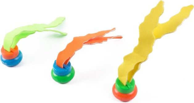 Het duikspeelgoed bestaat uit 3 duikballen. Deze zinken in het water naar de bodem en dus een leuke manier om de zwem- en duikvaardigheden te verbeteren. Kenmerken: Kleurenmix: oranje, groen en geel Materiaal: kunststof