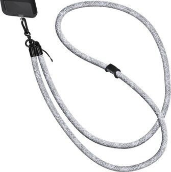 Universeel Het telefoonkoord is te gebruiken met alle hoesjes die beschikken over een dichte onderkant. Daarnaast wordt het koord geleverd met een stevige pad voor een veilige bevestiging van het koord.