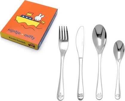 Op zoek naar een (kraam)cadeau? Van dit leuke besteksetje van Nijntje wordt iedereen blij. Het thema is voertuigen en op het bestek zijn een boot, trein, auto en vliegtuig gegraveerd. Het besteksetje is gemaakt van RVS 18/10. Poetsen is niet nodig en het besteksetje mag in de vaatwasmachine.