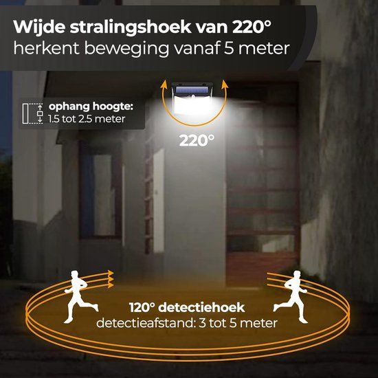 Merkloos Solar Buitenlamp met Bewegingssensor - 208 LEDS - Zwart - Beveiligingslampen