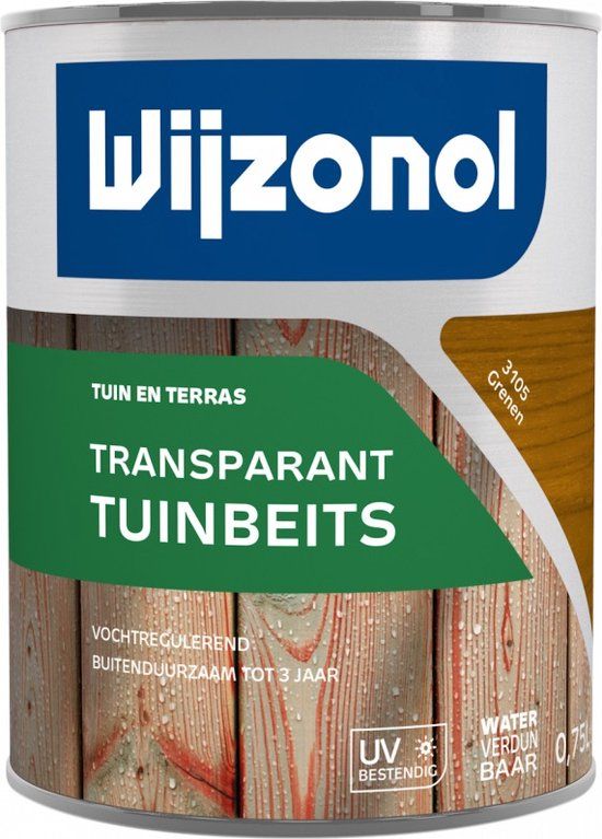 Wijzonol Transparant Tuinbeits is een transparante, matte, sneldrogende beperkt filmvormende beitsverf voor buiten op basis van acrylaat technologie op waterbasis. De ideale transparante beits voor al uw houten tuinmeubilair, tuinhuisjes, schuttingen, per