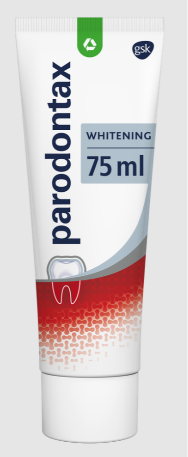 Parodontax Whitening Tandpasta is een dagelijkse tandpasta die 4x effectiever* tegen tandplak is dan een normale tandpasta. Deze fluoride tandpasta is geschikt voor dagelijks gebruik en helpt uw gebit gezond te houden en helpt de natuurlijke witheid van tanden te behouden door het voorzichtig verwijderen van oppervlakkige vlekken. Parodontax is met name zeer geschikt voor mensen met tandvleesproblemen; het helpt tegen bloedend tandvlees, of bijvoorbeeld gingivitis en bovendien wordt het tandvlees sterker wanneer u dagelijks tweemaal met deze unieke formule poetst. Daarnaast heeft het een karakteristieke smaak, die na 14 dagen poetsen doorgaans lekker wordt gevonden en waarna u niet meer zonder wilt.Helpt de natuurlijke witheid van tanden te behoudenHelpt tegen en voorkomt bloedend tandvleesMet verbeterde smaak en unieke formuleBevat natriumbicarbonaat & fluoride tandpasta voor gezond tandvleesKlinisch bewezen dat dagelijks poetsen met Parodontax helpt tegen bloedend tandvlees en tandvlees problemen voorkomt* bij 2x per dag poetsen, na 6 maanden gebruikHoe te gebruiken?Volg altijd de aanwijzingen op de verpakking. Poets 2x per dag, max. 3x, slik zo weinig mogelijk door en spuug uit.