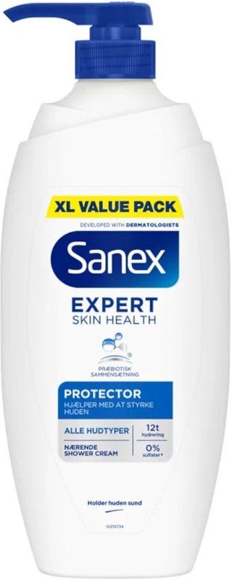 - Sanex Douchecrème Expert Skin Health ProtectorSanex Expert Skin Health Protector douchecrème is ontwikkeld om je huid zacht te reinigen én te versterken. Deze bodywash voor mannen en vrouwen bevat een pre- en postbiotica complex dat goede huidbacteriën stimuleert en de natuurlijke huidbarrière ondersteunt. Zo helpt het je huid beter bestand te zijn tegen invloeden van buitenaf. De formule biedt tot 12 uur hydratatie en is mild genoeg voor dagelijks gebruik. Met 92% ingrediënten van natuurlijke oorsprong**