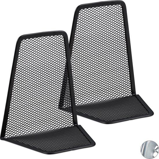 Relaxdays Boekensteun set van 2 - boekenhouder - metaal zwart