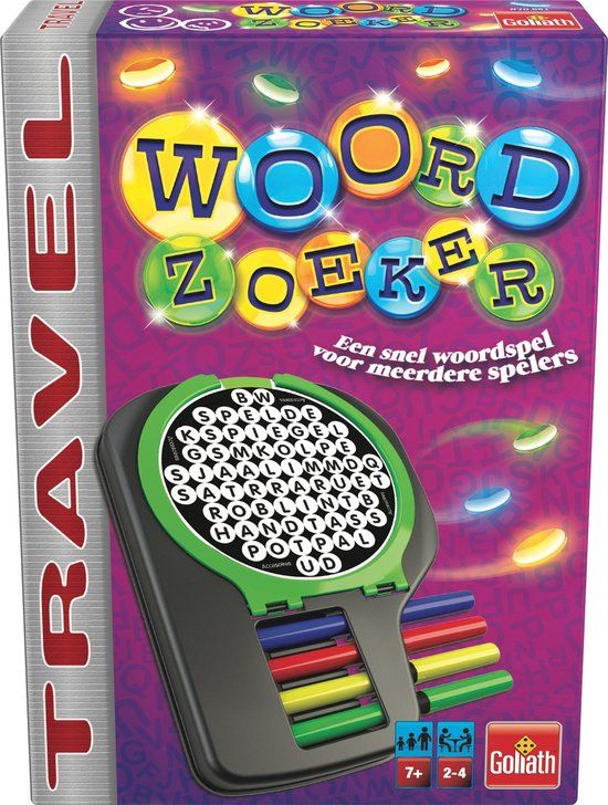 Deze Travel editie is heel erg handig voor onderweg. Ga je op reis maar geen ruimte voor de originele doos? Neem dan de handige kleinere versie mee! Draai de ring naar het volgende woord en zorg ervoor dat je de eerste bent die het woord vindt. Ben je dat, roep dan direct ‘Woordzoeker’! Ben je als eerste, dan mag jij je fiches op het bord leggen. Zorg dat je de meeste woorden vindt en zorg dat jouw kleur lenzen het bord in zijn greep houdt! Dwarsboom anderen door woorden van andere spelers te kruisen, zodat zij onverwachts hun fiches moeten verwijderen. Van begin tot eind kunnen kansen keren.\n\nSpelomschrijving\nKies een van de 10 dubbelzijdige woordenkaarten. Leg deze op de draaischijf, leg daarop de transparante schijf en daaroverheen de groene ring. Draai de groene ring zo, dat in de opening een groen veldje te zien is. Vergeet niet de totem onder het bord vandaan te halen.\n\nBij aanvang van het spel wordt de groene ring kloksgewijs verder gedraaid, tot het volgende woord in de opening zichtbaar is. Iedereen zoekt nu gelijktijdig naar dit woord. Het kan in alle richtingen staan, maar altijd in een rechte lijn.\n\nZodra je het woord gevonden hebt, knijp je in de totem en zegt waar het woord is. Nu mag je gekleurde fiches van je eigen kleur op de letters leggen. Als er al fiches van andere spelers op de letters liggen, dan worden deze weggehaald. De schijf wordt vervolgens verder gedraaid en het volgende woord kan gezocht worden.\n\nHet spel eindigt als alle woorden gevonden zijn, of als een speler al zijn fiches op het bord heeft. De speler met de meeste fiches op het bord heeft dan gewonnen.\n\nAndere versies\nEr zijn ook andere versies van Woordzoeker, waaronder de Originele en Kids editie. Junior is speciaal ontwikkeld voor de kleintjes, zodat zij al spelende met taal bezig zijn.