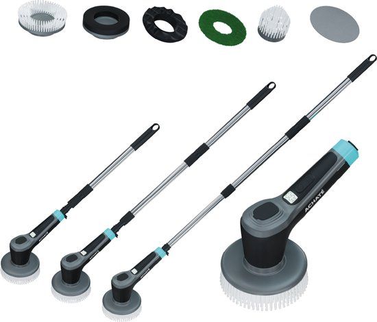 Achaté Elektrische Schoonmaakborstel - Schrobber met steel - Poetsmachine - Elektrische Schrobber - Polijstmachine - Schoonmaakborstel met 6 opzetstukken - Borstelkoppen