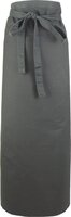 Stijlvolle schorten verkrijgbaar in 6 kleuren: wit, zwart, antraciet, donker blauw, donker rood en bruin. Er zijn 2 afmetingen in deze serie: 100x100cm (sloven tot op de enkels) + 70x100cm (halterschort met brede zak).