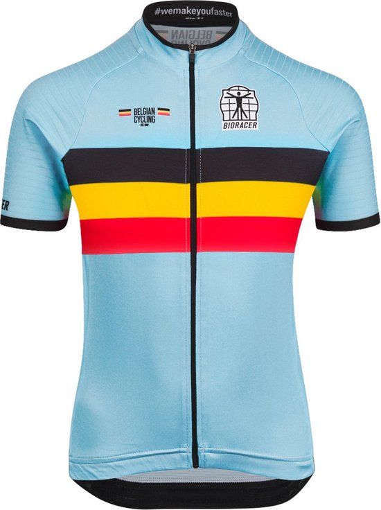 BIORACER Official Team België 2023 Kinder Fietsshirt - Blauw - Maat 128 - Unisex