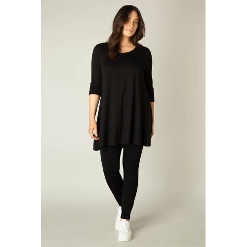Deze a-lijn top voor dames van Base Level Curvy by Yesta is gemaakt van een viscosemix. Het model heeft een ronde hals en 3/4 mouwen.details van deze top:• stijlnaam: Aria
