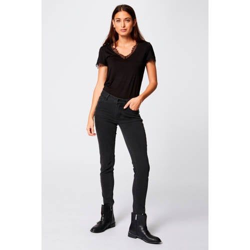 Deze top voor dames van is gemaakt van een viscosemix. Het model heeft een V-hals en korte mouwen.Bijzondere kenmerken:- kanten details