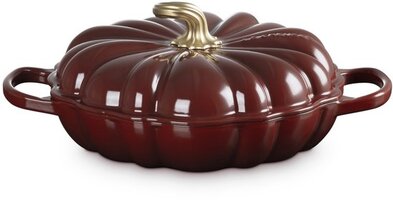 Le Creuset Braadpan - Campagnard 28 cm - "Pompoen" - in Geëmailleerd Gietijzer - Garnet - Braadsledes