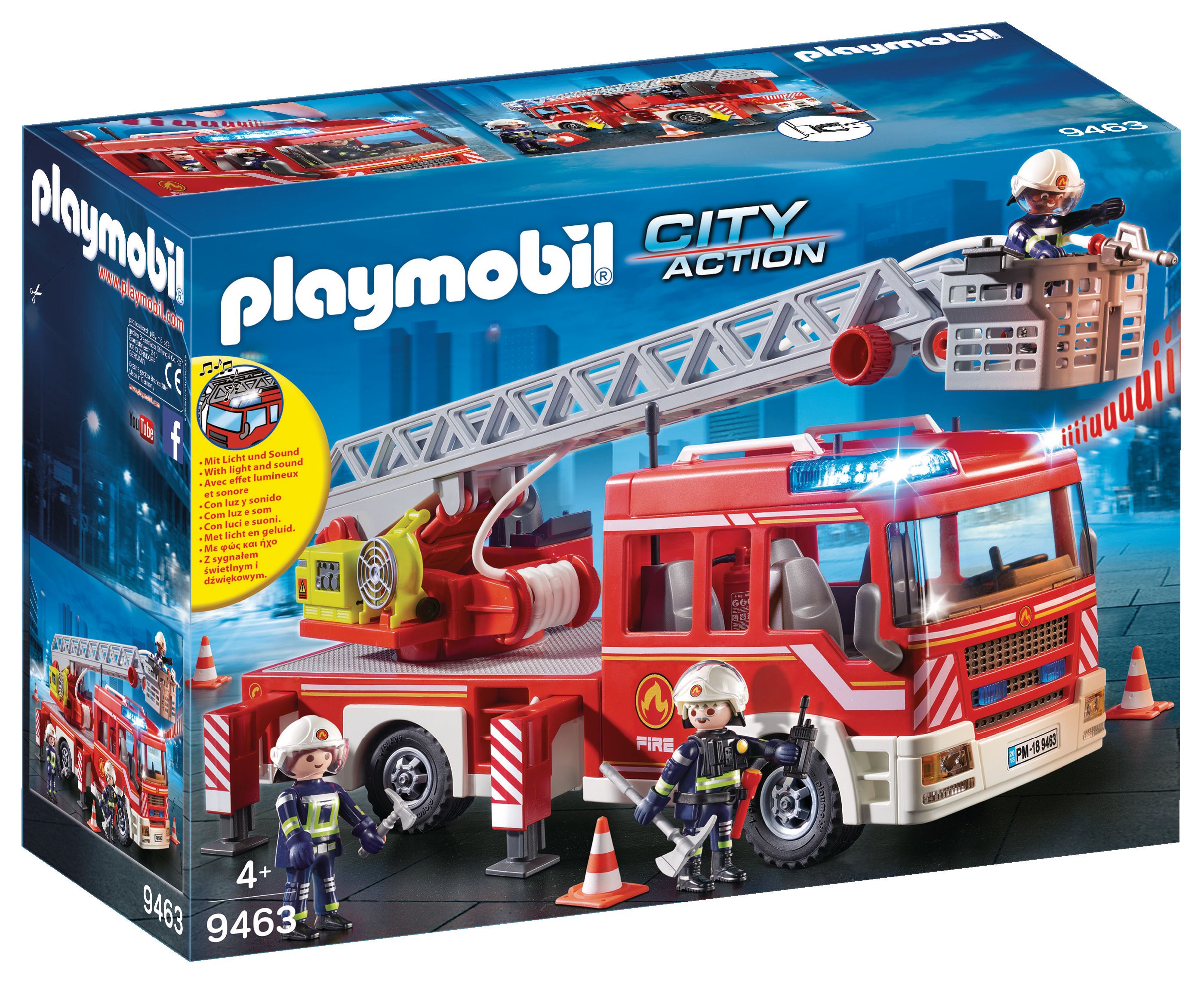 Met lichten en sirene aan, rijden de PLAYMOBIL® brandweerlieden in snel tempo met de brandweer ladderwagen naar de plaats van actie. Nu moeten ze snel zijn! Twee verdiepingen van het huis staan al in brand. Maar de PLAYMOBIL® brandweerlui zijn uitstekend opgeleid. Binnen enkele seconden hebben ze de gevarenzone beveiligd, de ladder verlengd en de brandslangen klaar gemaakt voor gebruik. Nu is het tijd om het vuur uit te doven! Gelukkig wordt de brand snel onder controle gebracht.Met geluid: De brandweerauto is uitgerust met coole licht- en geluidseffecten.