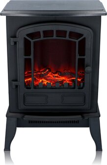 Deze elektrische sfeerhaard van Classic Fire geeft een realistisch vlameffect en naar wens ook verwarming. Omdat je elektrische verwarming gebruikt, heb je geen schoorsteen of hout nodig. Kortom, sfeer in een handomdraai! De zwarte elektrische kachel Torino staat op pootjes vrij in de ruimte. Hij is zo'n 56,5 centimeter hoog, 25 centimeter diep en 38 centimeter breed.