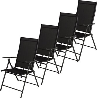 Infinity Goods Tuinstoel - 4 Stuks - Zwart - 7 standen - Inklapbaar - Standaard klapstoelen